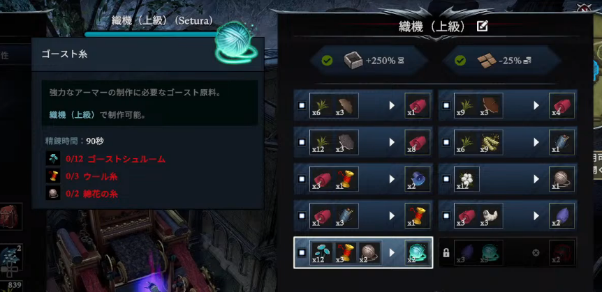 とはいえ、何とかマトカの撃破に成功して、装備品加工に必要な「ゴースト糸」のレシピを解放。